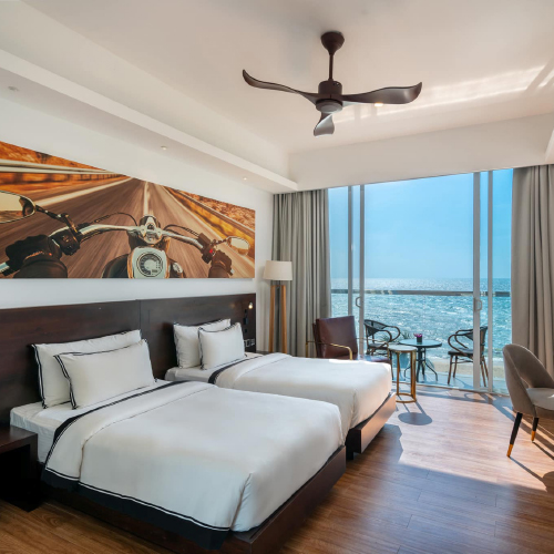Regal Reseau blends modern comfort with a coastal setting in Negombo. Guests can enjoy local and international cuisine, a relaxed rooftop bar, and a small spa offering essential treatments.